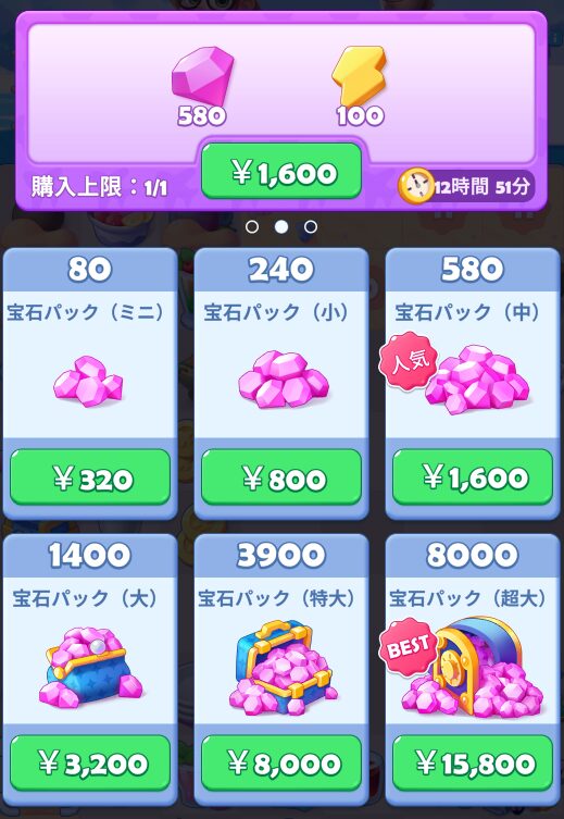 課金のページに入ると、それぞれ対応した課金パックがすぐに見つかります。