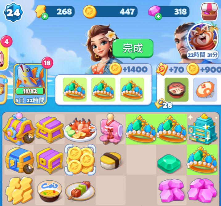 イベントや箱からもダイヤのアイテムが出現します。ダイヤも最大まで合成すると効率が良いので空きスペースと相談しながら進めてください。