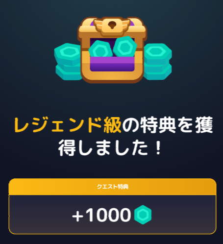 もらえる宝箱は3個。最後の宝箱でレジェンド級を引ければ1000ユニット獲得できます。