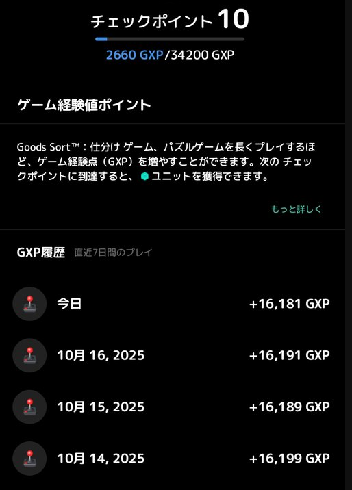 私が調べた範囲では「Goods Sort:仕分けゲーム」が一番チェックポイントを上げやすいと感じました。