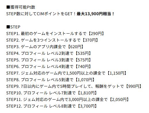 高額の課金条件は赤字となるので、初回の課金STEP以外はスルーしてもいいでしょう。
