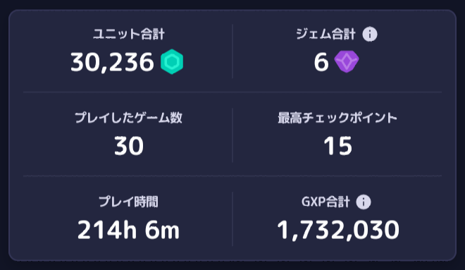 ちなみにチェックポイント15になったときの獲得ポイントは「ユニット+20」「PXP+1750」でした。
