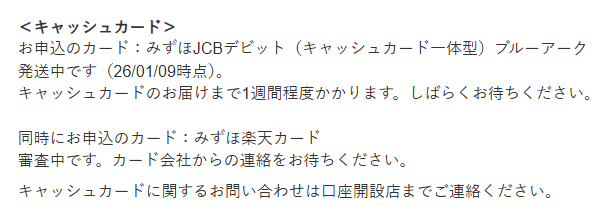 しばらくすると、キャッシュカードのステータスが「発送中」に変わりました。