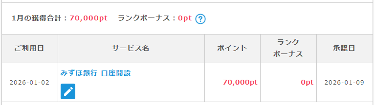 ポイントが承認されました。1月2日に申し込み1月9日に承認。