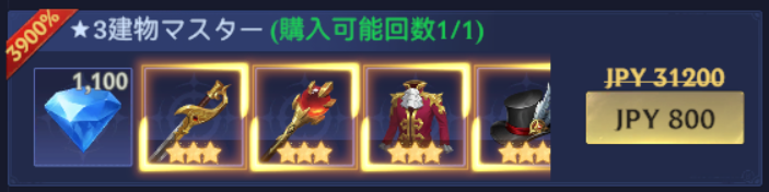 ミッション通りに課金すれば迷うことはありませんが、その他の課金として「☆3建物マスター」をおすすめします。